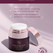 Hydraterende en beschermende formule met vitamine C en niacinamide. Werkt verhelderend, egaliserend én beschermend. De luchtige textuur vormt een perfecte basis voor make-up. Verpakt in een luxe pomp-pot met refill-systeem.