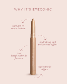 De Eyeconic Stick is een 2-in-1 oogschaduw- en highlighterstick met een verkoelende, aquatische textuur. Deze innovatieve stick glijdt moeiteloos over het ooglid, droogt snel op en zorgt voor een fris gevoel. De langhoudende, hydraterende formule biedt intens pigment met een natuurlijke glow – perfect voor een moeiteloze ooglook die tot 9 uur blijft zitten. Ideaal voor onderweg dankzij het compacte formaat en de geïntegreerde slijper.